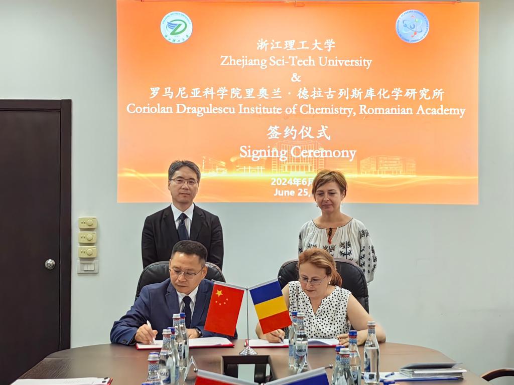 当地时间6月25日上午,副校长周必彧随浙江省教育代表团在布加勒斯特参加浙江省教育厅与罗马尼亚伊尔福夫省学校督察署工作交流会议,并代表学校与罗马尼亚科学院科里奥兰·德拉古列斯库化学研究所签署合作协议。浙江省教育厅副厅长陈峰、伊尔福夫省学校督察署副总督察克里斯蒂娜∙佩特莱、罗马尼亚科学院科里奥兰·德拉古列斯库化学研究所所长莉莉安娜∙切赫以及来自浙江科技大学,浙江纺织服装职业技术学院,罗马尼亚激光、等离子体和辐射物理研究所,布加勒斯特大学的代表出席会议。会议由罗马尼亚-中国工商会执行会长、宁波市驻罗马尼亚联络处首席代表张建军主持。