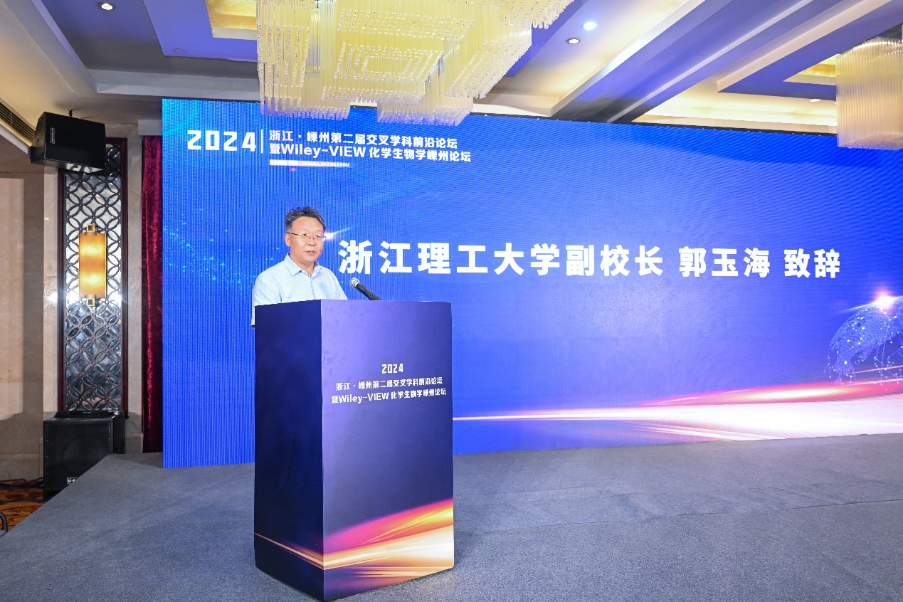 开幕式上,郭玉海代表学校对本次论坛的举行表示热烈的祝贺,向长期以来关心支持mk官方网站_mk(中国)建设和发展的各位领导、各位朋友致以诚挚的感谢,并向大家介绍了mk官方网站_mk(中国)、mk官方网站_mk(中国)嵊州创新研究院与Wiley出版集团的基本情况。他表示,期望通过学术与产业的深度交流,激发师生的创新潜能,为企业提供创新灵感,吸引优秀人才和成果扎根嵊州,共同推动生命健康产业的高质量发展,在未来的合作中达到新的高度。
