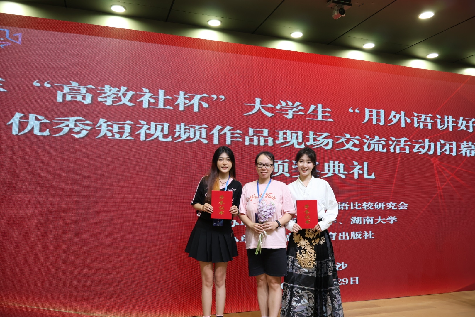 9月27日至29日,“高教社杯”大学生“用外语讲好中国故事”短视频大赛全国总决赛在湖南大学举办,我校外国语学院选送的短视频作品《入木三分,E路生花》(指导老师:吴蓓蓓,团队成员:胡泽博、管璨、张雨欣、蔡灵艺、邹丽鸣)表现出色,荣获全国特等奖。