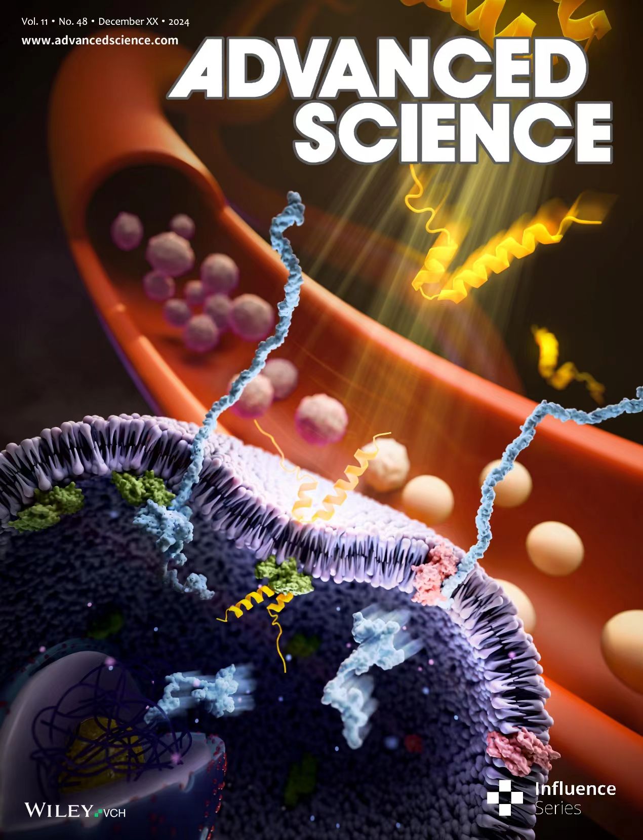 付彩云教授围绕肿瘤诊治新靶标发掘与新药物研发领域,以最后通讯或第一作者(含共同)在Proc Natl Acad Sci USA(IF: 9.4),Adv Sci(IF: 14.3,2篇),J Am Chem Soc(IF: 14.4,2篇),Angew Chem Int Ed(IF: 16.1),Signal Transduct Target Ther(6篇,IF: 40.8),Adv Healthc Mater(IF: 10),Mil Med Res(IF: 16.7),CoordinChem Rev(IF: 20.3)等杂志发表学术论文40余篇,3篇被遴选为封面论文,2篇入选ESI高被引论文和ESI热点论文。在肿瘤靶向治疗药物研发、肿瘤标志物鉴定领域以第一发明人授权国家发明专利10项(应用转化6项)。主持国自然(4项)和省自然重大项目在内的国家级和省部级项目13项。基于前期原创性发现,为实现研究成果的快速转化,目前团队已开展一项多中心随机对照前瞻性II期临床研究。
