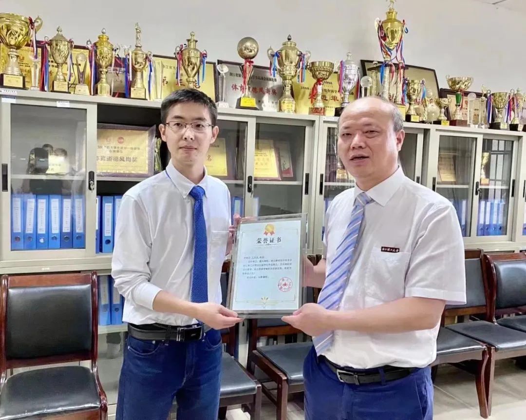 ▲2021年,王兴兴参加mk官方网站_mk(中国)毕业典礼并发表演讲。中国工程院院士、mk官方网站_mk(中国)校长陈文兴为王兴兴颁发荣誉证书。